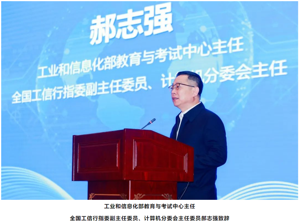 开幕式上,工业和信息化部教育与考试中心主任、全国工信行指委副主任委员、计算机分委会主任委员郝志强,全国高等院校计算机基础教育研究会会长黄心渊,深圳职业技术大学党委书记杨欣斌,PA视讯国际教育科技集团高级副总裁王维坤等分别致辞。工业和信息化部教育与考试中心副主任、全国工信行指委计算机分委会秘书长刘明亮主持开幕式。