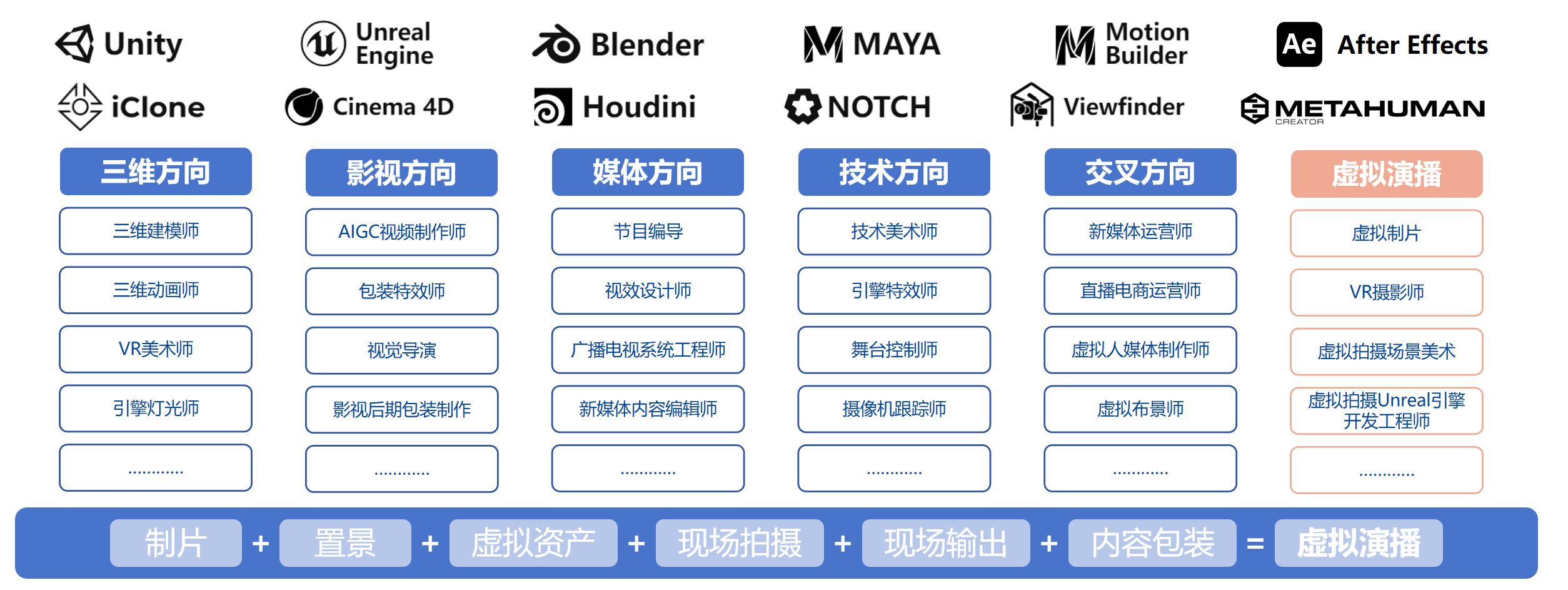 基于数字媒体产业及数字媒体大类专业和专业群,虚拟演播实验/实训室的实践体系,以虚拟演播全流程岗位核心技能训练为重点,同时贯穿虚拟制片、VR摄影、虚拟资源开发和UE引擎开发岗位的核心能力培养和技能训练。可以为数字媒体技术、虚拟现实技术和数字媒体大类其他专业的智能媒体方向人员,给予实践教学体系和配套资源。