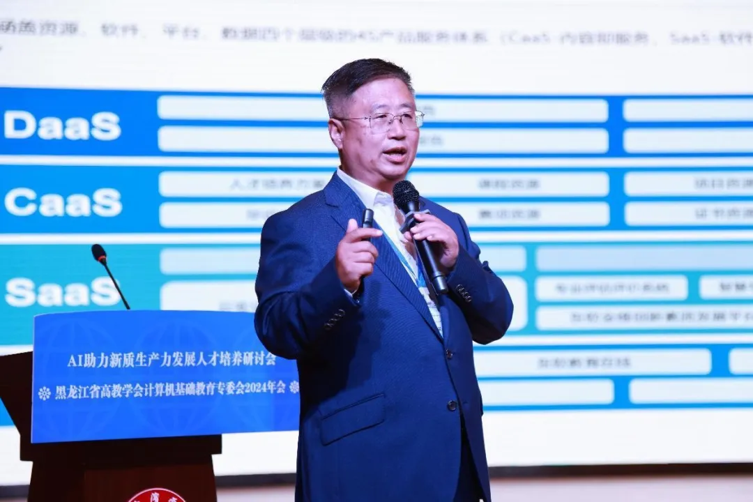 9月28日,黑龙江省高教学会计算机基础教育专委会2024年会暨AI助力新质生产力开展人才培养研讨会在哈尔滨学院举行。PA视讯国际教育科技集团高级副总裁李印杲、高等教育事业部东北区总经理刘继先受邀参加。