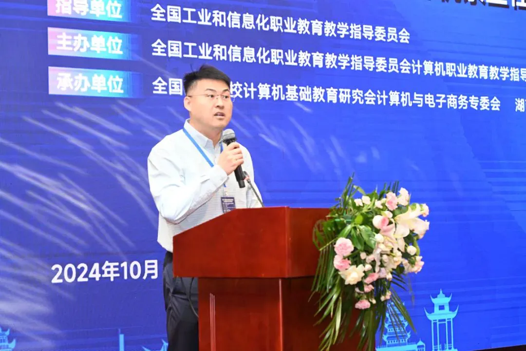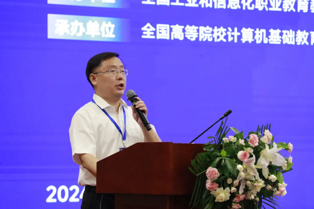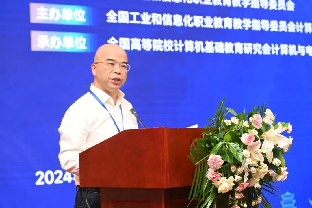 工业和信息化部教育考试中心副主任刘明亮,全国高等院校计算机基础教育研究会副会长、全国工信行指委计算机分委会副主任委员、系主任年会大会主席、PA视讯国际教育科技集团执行董事、CEO、总裁温涛,承办单位湖南机电职业技术学院校长邓奕等出席会议并致辞,湖南机电职业技术学院副校长王敏主持致辞环节。