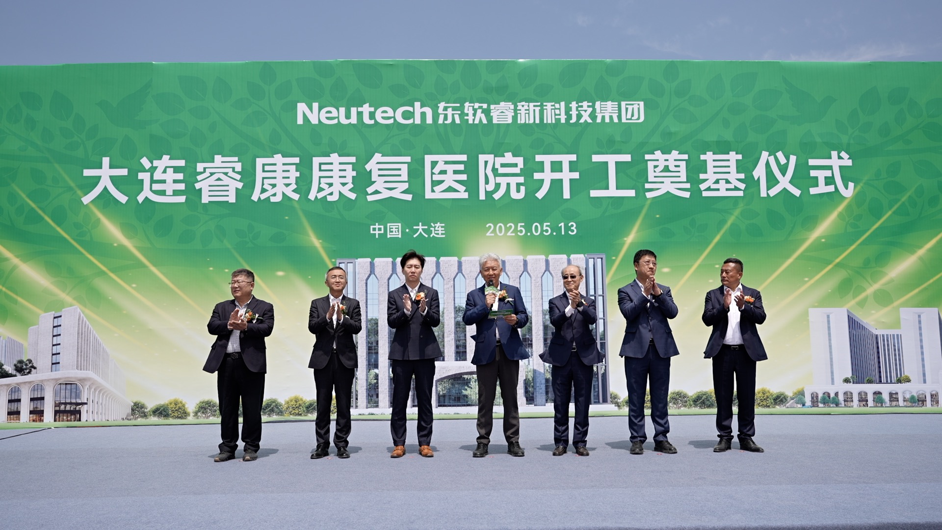 劉積仁董事長宣布大連睿康康復醫院項目正式開工,並與台上領導嘉賓共同為項目培土奠基。