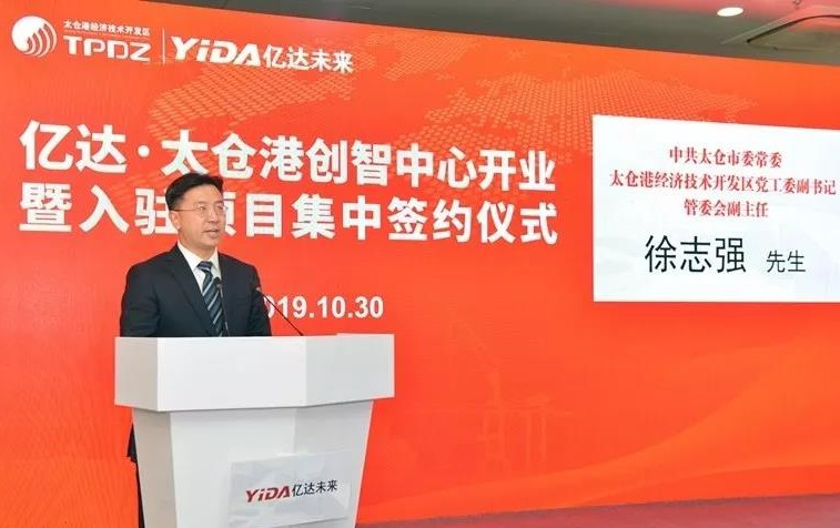 太仓市市委常委、太仓港经济技术开发区党工委副书记、管委会副主任徐志强致辞(图片来源于太仓港官方微信)