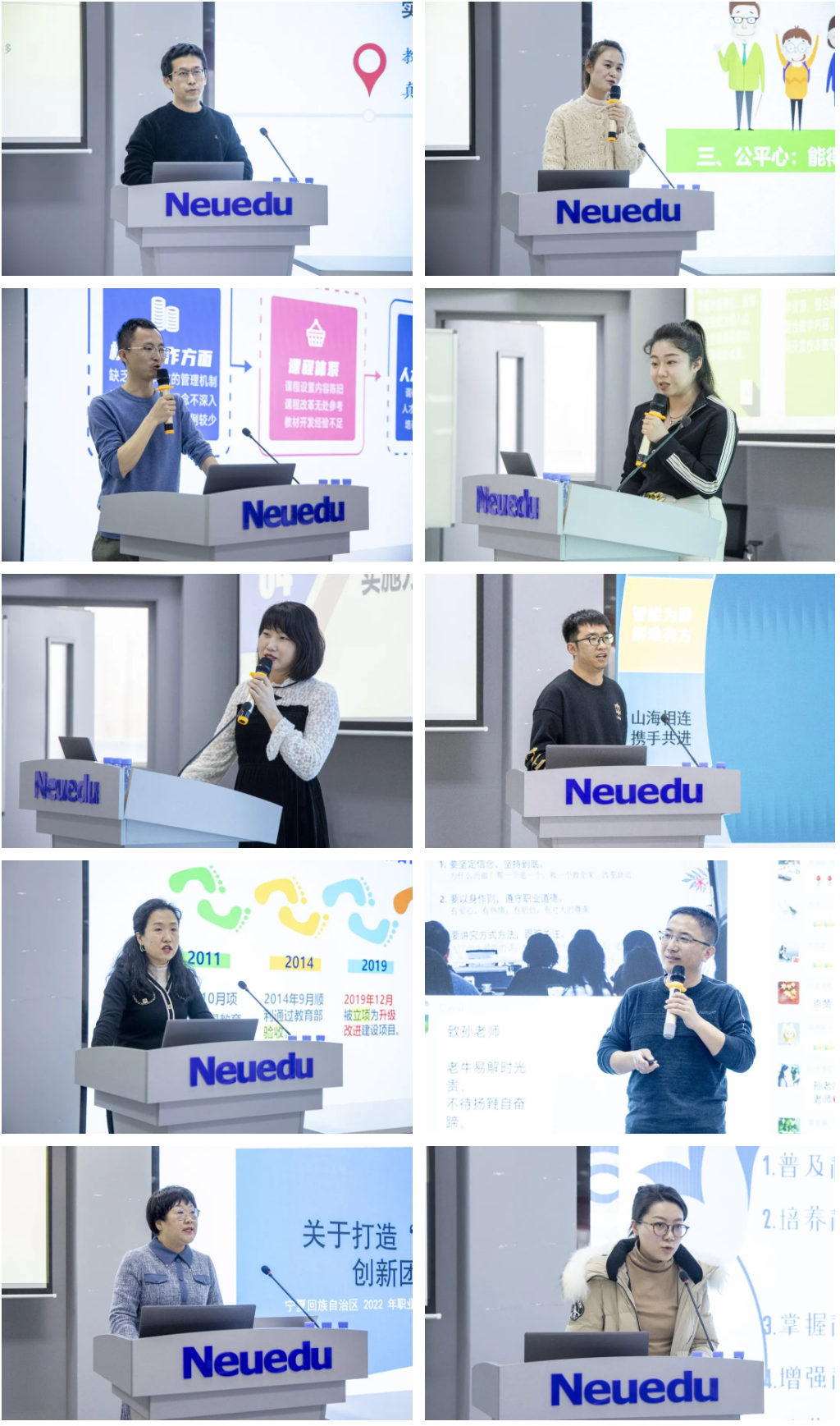 在反思汇报环节,各小组介绍教学经验、总结培训心得、提出疑难问题,彼此间引发共鸣思考。