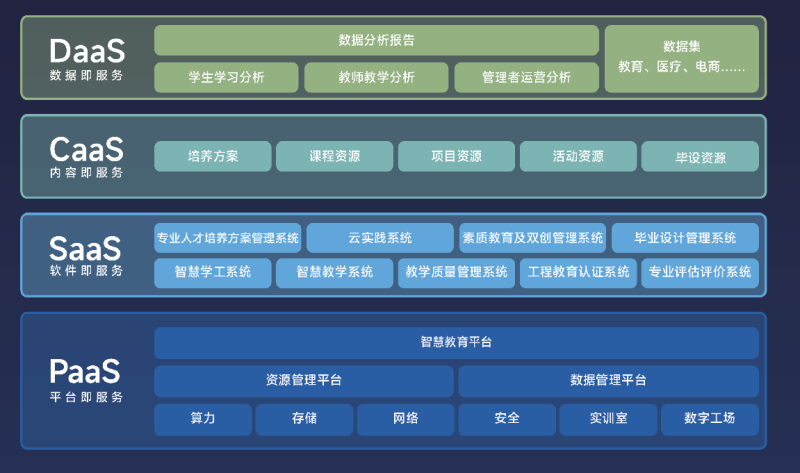 年内,PA视讯国际教育以专业共建与产业学院、智慧教育平台与教学内容、实验实训室解决方案等形式,并顺利获得开放式产教融合基地——PA视讯国际数字工厂为载体,创新性地打造出了“4S”产品服务模式(PaaS-平台即服务,SaaS-软件即服务,CaaS-内容即服务,DaaS-数据即服务)。